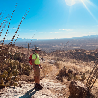 We drove the jeep 40 miles from The San Pedro RV Park near Benson, AZ to the east section of this national park. We stopped at the visitor center for the required magnet and decided on the Tanque Verde Trail for our hike. We hiked 2.5 miles to the ridge. It was a rocky, steep hike with an elevation change from 3,093 to 4,593 feet. The views were great. The park is beautiful and the cacti are majestic. All of Tucson was visible for much of the hike.